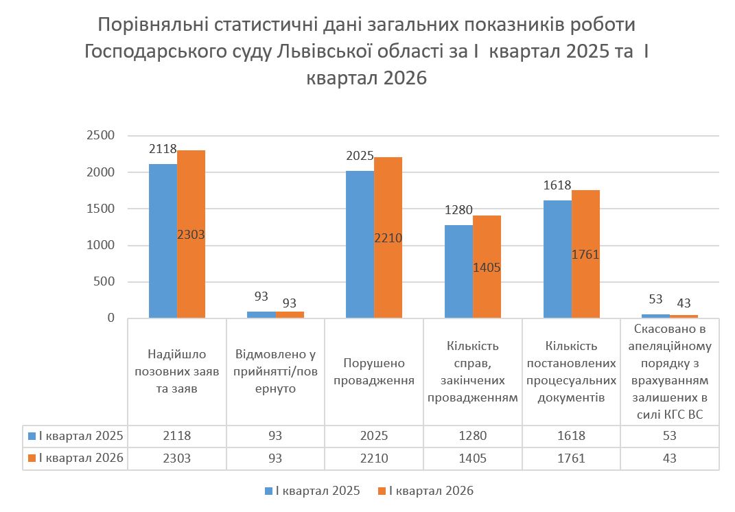 Сума сплаченого судового збору особами, які зверталися до Господарського суду Львівської області, за перший квартал 2026 року становить 12 113 801 гривень.