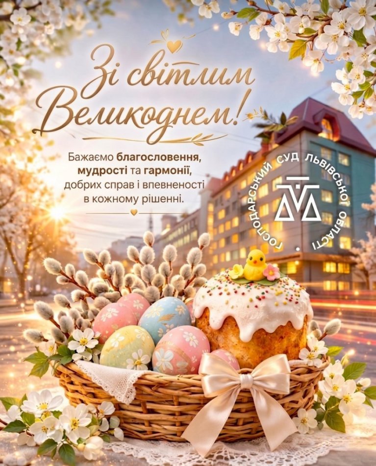 Колектив Господарського суду Львівської області щиро вітає усіх зі світлим святом Великодня!